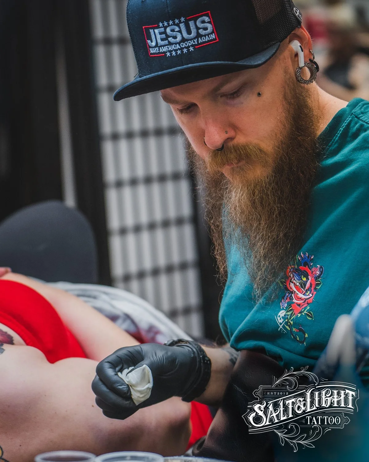 Joel Parker was born in Eugene, Oregon but has lived in Arizona for the majority of his life. Joel has been tattooing since 2013 and has been drawing since he was old enough to pick up a pencil. Working toward a degree in Fine Arts, he continues to gather knowledge in many art forms. Joel does not create any art or tattoo images that go against his personal beliefs. Joel has been working at Salt & Light Tattoo his whole tattooing career and is BBP certified.